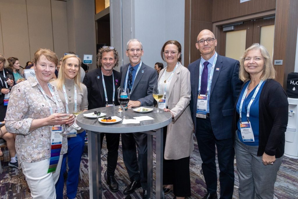 During the All SIG Reception during ENDO 2025 in San Francisco, Patisaul (second from left) found herself with (left to right): Denise Belsham, PhD; and Endocrine Society Past-Presidents Gary Hammer, MD, PhD, and Stephen Hammes, MD, PhD; Margarita Ochoa-Maya, MD; and Immediate Past-President John Newell-Price, MD, PhD, FRCP; and Past-President Ursula Kaiser, MD.